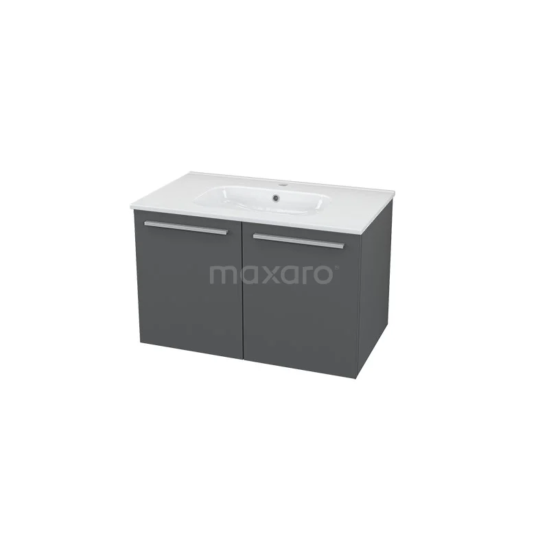 Badmöbel 80cm Box Grau 2 Türen Flaches Waschbecken Keramik