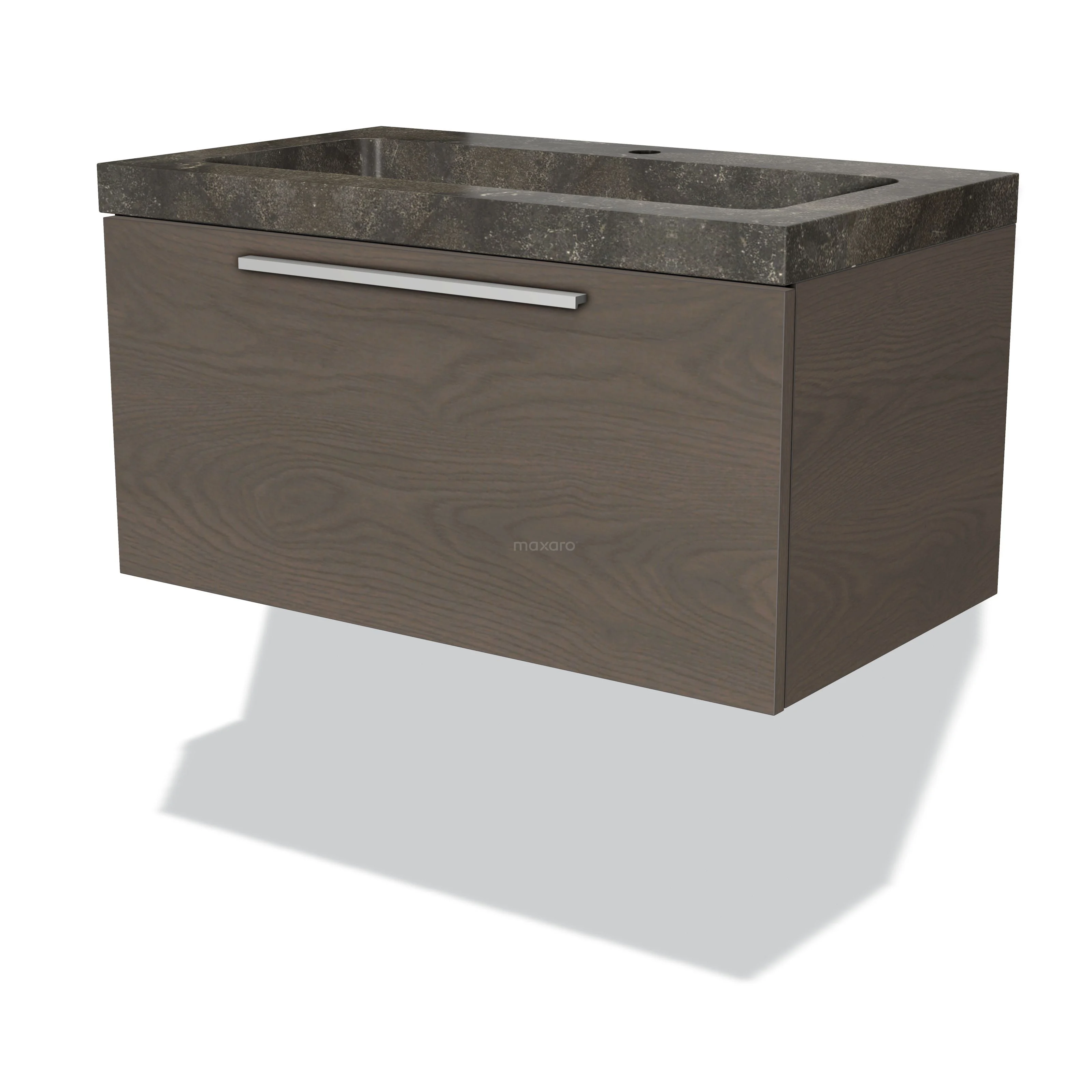 Badmöbel 80cm Modulo dunkelbraune Eiche 1 Schublade Flaches Waschbecken Naturstein Blaustein