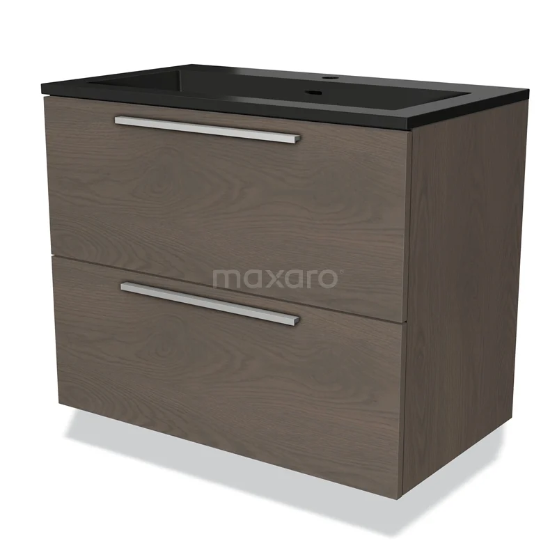 Badmöbel 80cm Modulo dunkelbraune Eiche 2 Schubladen Flaches Waschbecken Quarz