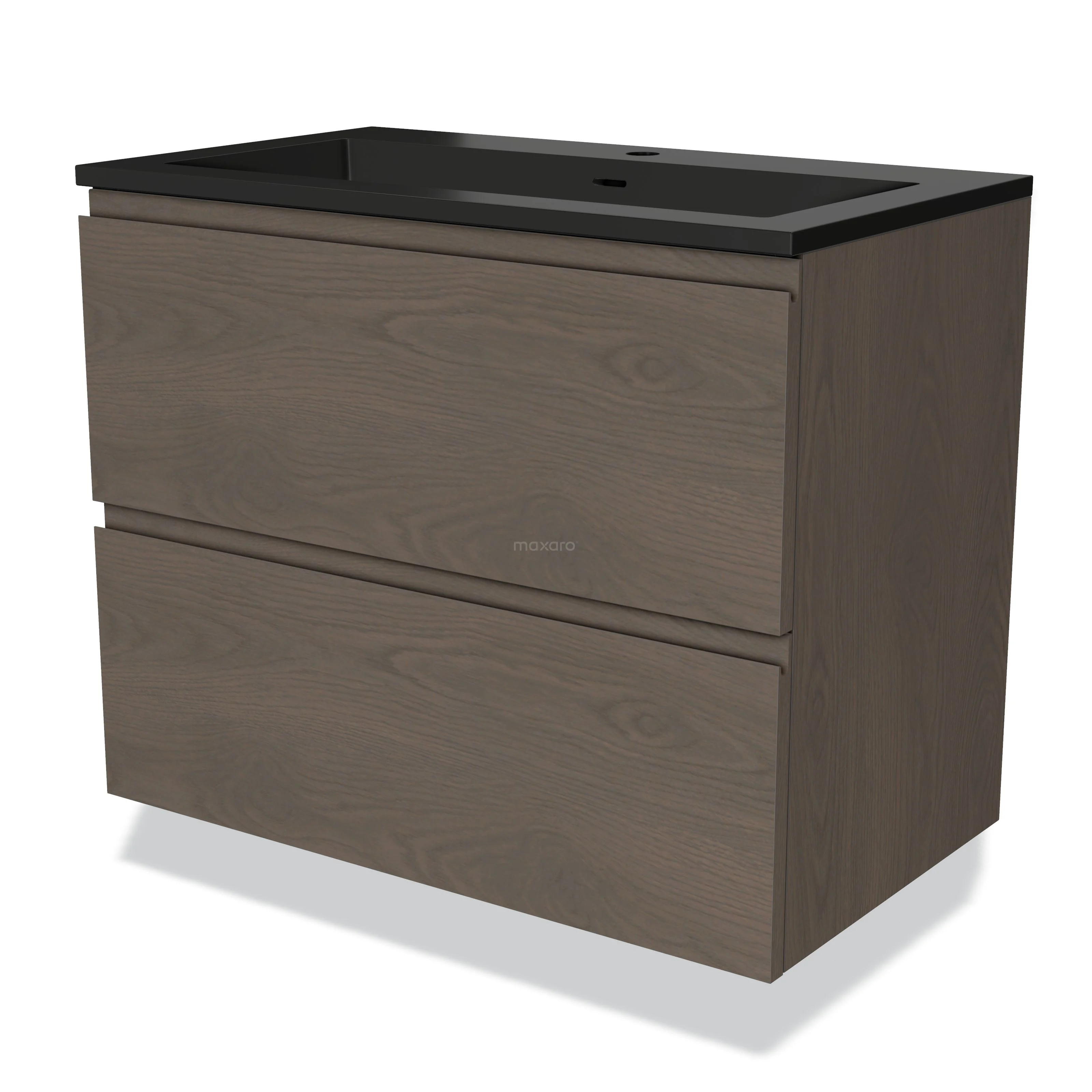 Badmöbel 80cm Modulo dunkelbraune Eiche 2 Schubladen griffloses Waschbecken Quarz