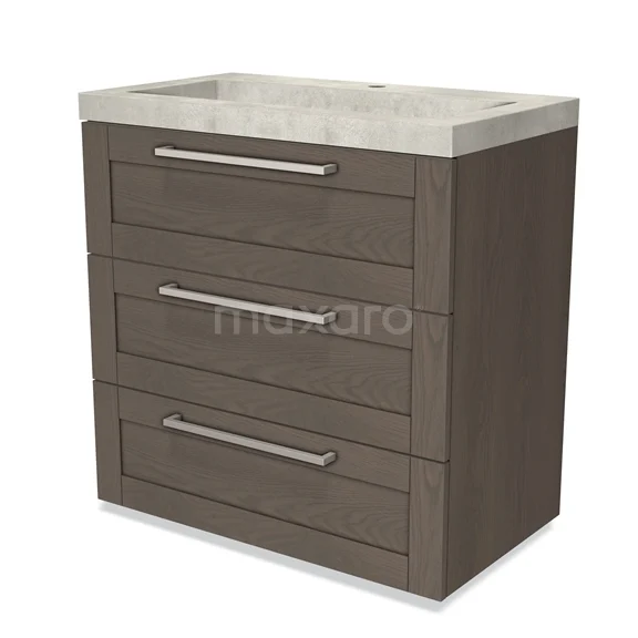 Badmöbel 80cm Modulo dunkelbraune Eiche 3 Schubladen Rahmen Waschbecken Beton