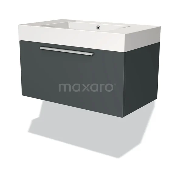 Badmöbel 80cm Modulo Dunkelgrau 1 Schubladen-Flachwaschbecken Mineralguss