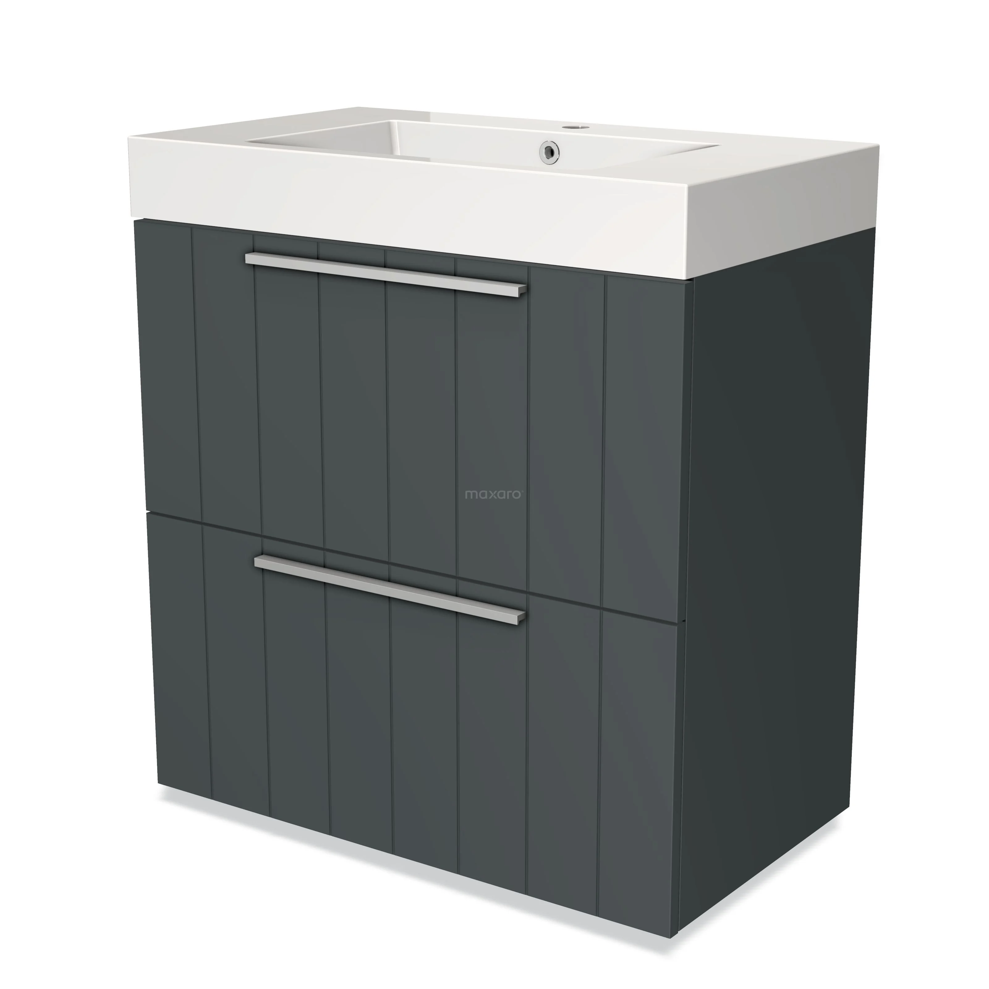 Badmöbel 80cm Modulo Dunkelgrau 2 hohe Schubladen Lamel Waschbecken Mineralguss