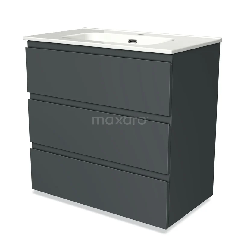 Badmöbel 80cm Modulo Dunkelgrau 3 Schubladen griffloses Waschbecken aus Keramik