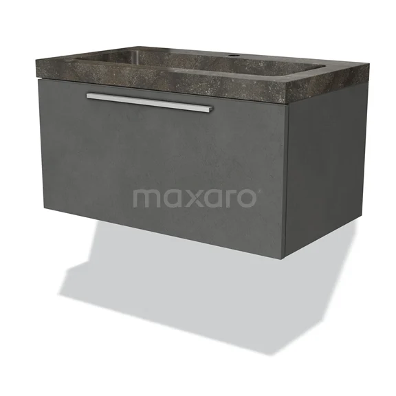 Badmöbel 80cm Modulo Dunkelgrau Beton 1 Schublade Flaches Waschbecken Naturstein Blau