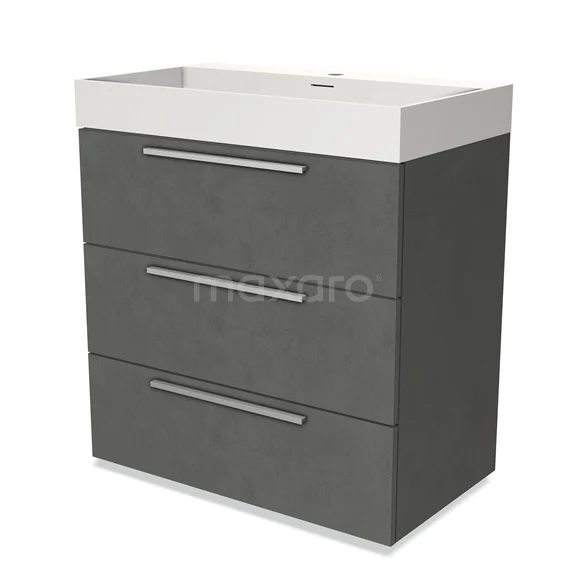Badmöbel 80cm Modulo Dunkelgrau Beton 3 Schubladen Flaches Waschbecken Solid Surface