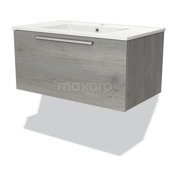 Badmöbel 80cm Modulo Graue Eiche 1 Schublade Flaches Waschbecken aus Keramik