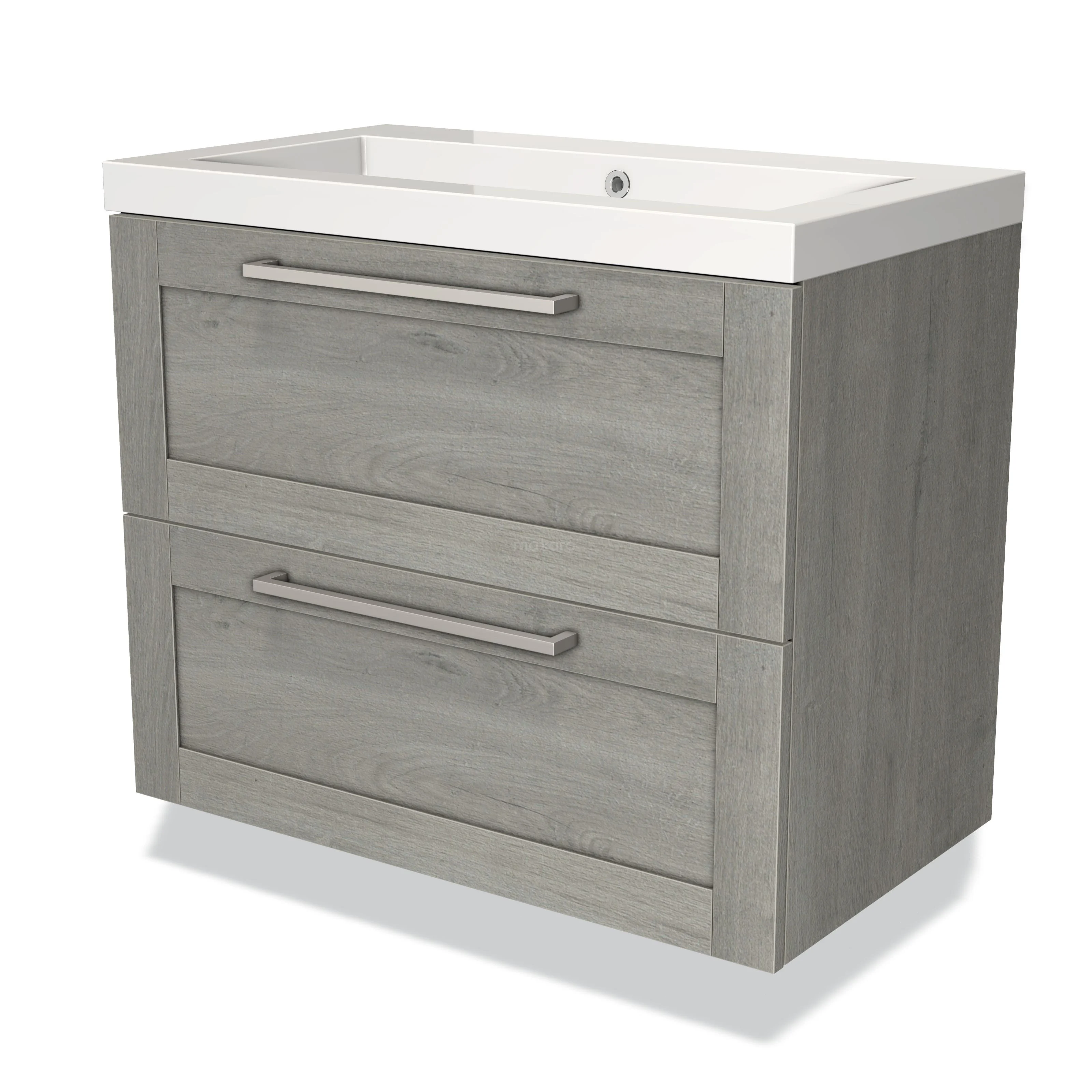Badmöbel 80cm Modulo Graue Eiche 2 Schubladen Rahmen Waschbecken Mineralguss