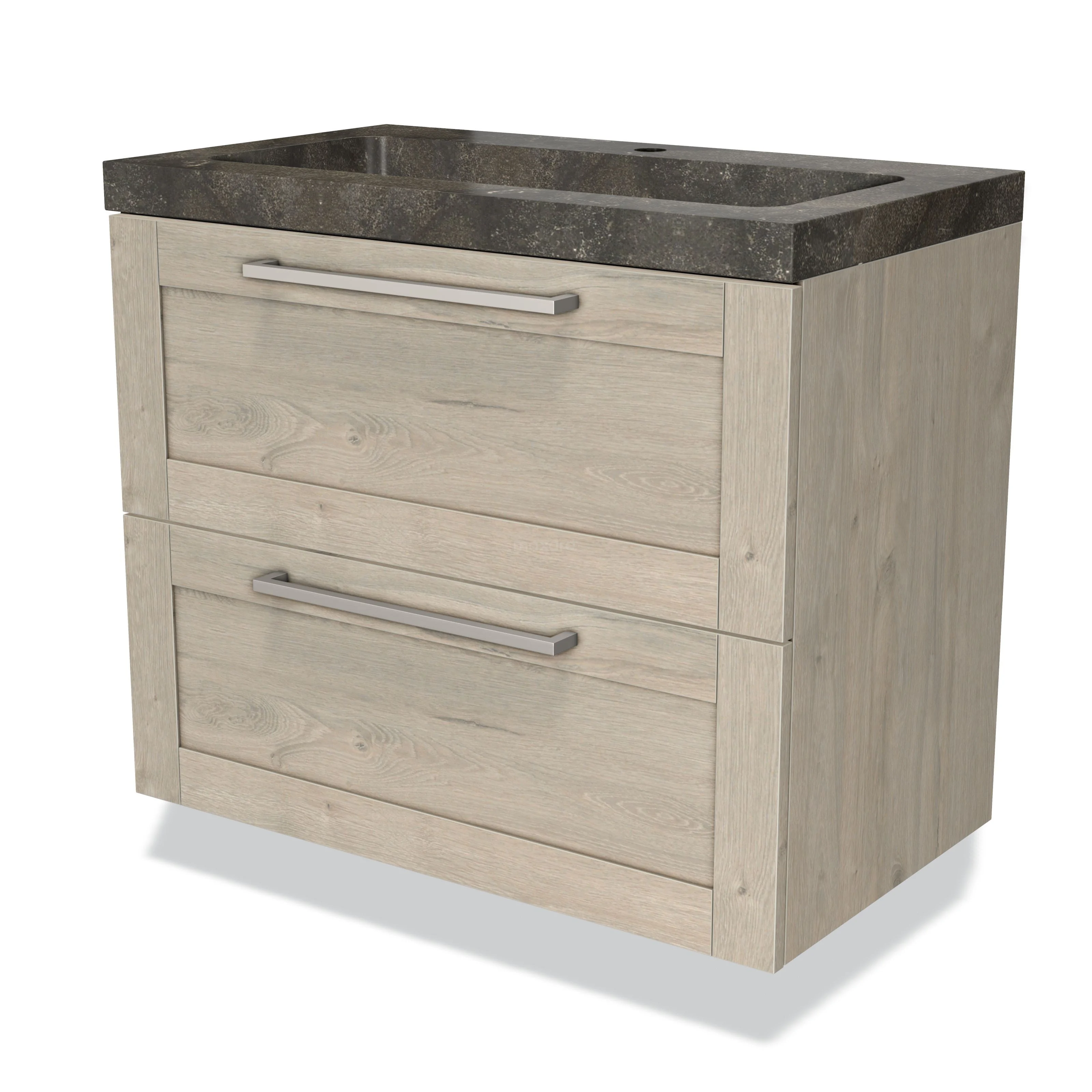 Badmöbel 80cm Modulo hellgraue Eiche 2 Schubladen Rahmen Waschbecken Naturstein Blaustein