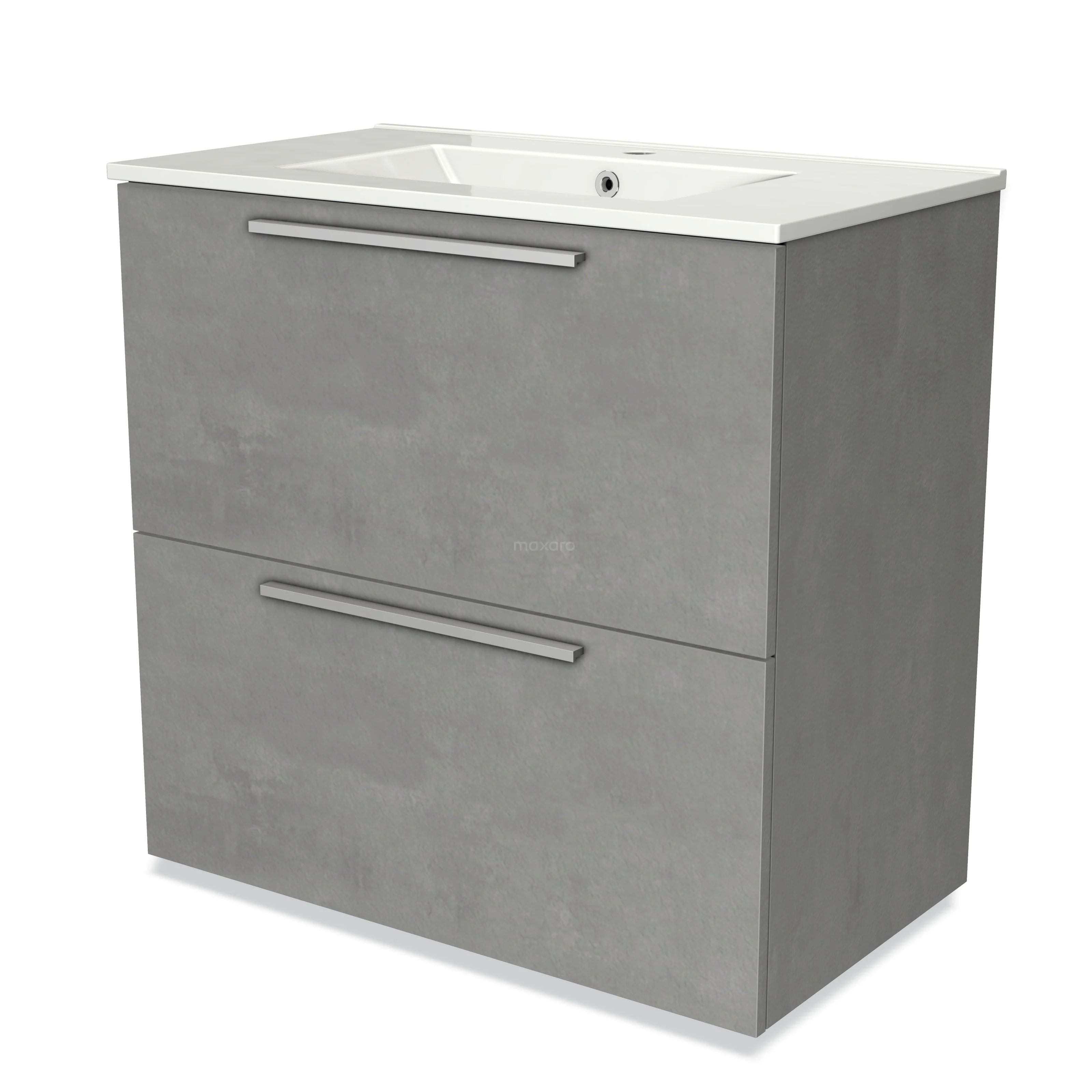 Badmöbel 80cm Modulo hellgrauer Beton 2 hohe Schubladen Flaches Waschbecken aus Keramik