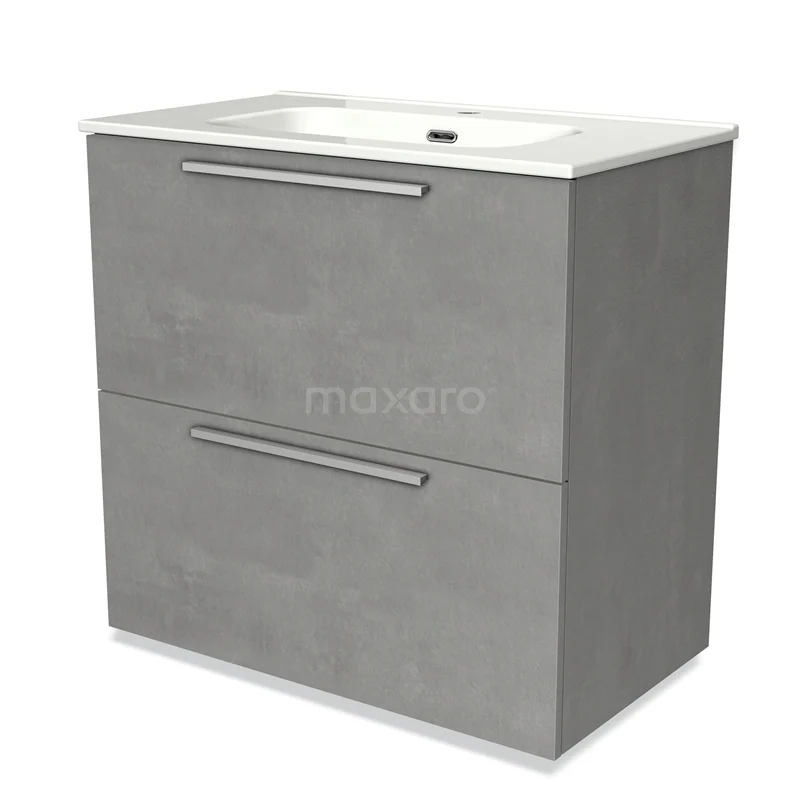Badmöbel 80cm Modulo hellgrauer Beton 2 hohe Schubladen Flaches Waschbecken aus Keramik