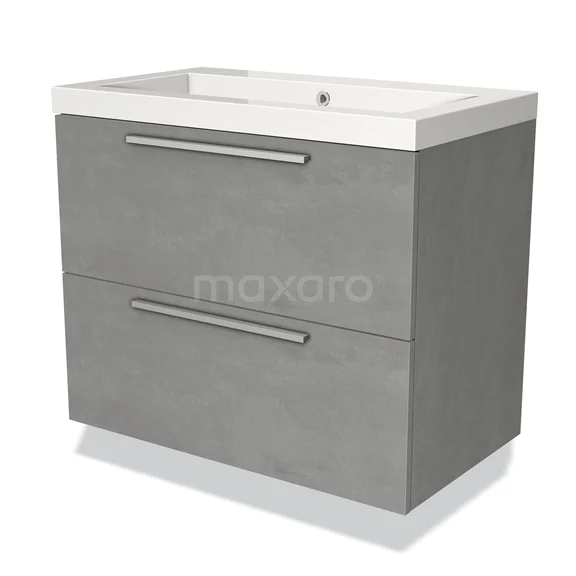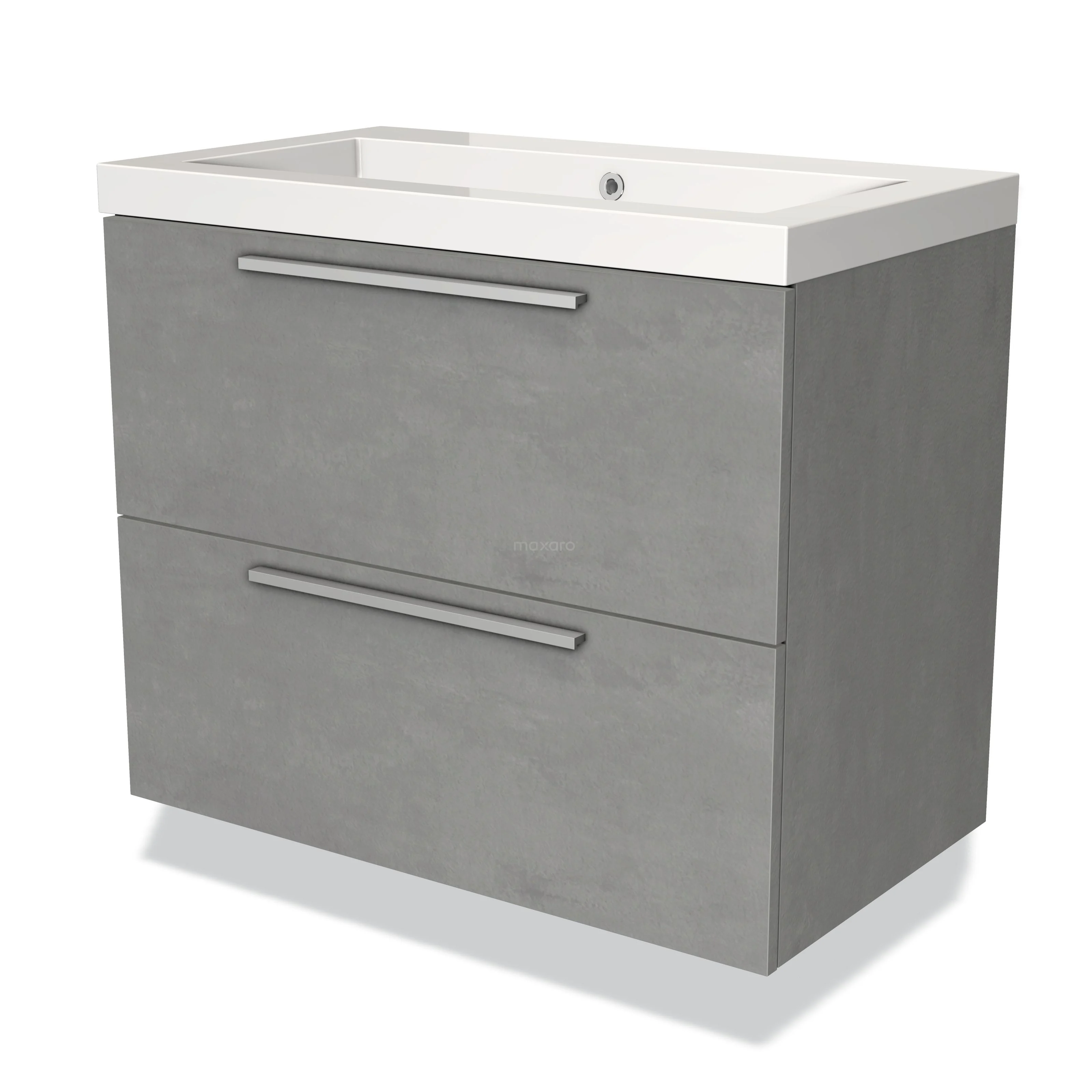 Badmöbel 80cm Modulo hellgrauer Beton 2 Schubladen Flaches Waschbecken Mineralguss