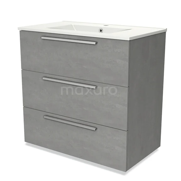Badmöbel 80cm Modulo hellgrauer Beton 3 Schubladen flaches Waschbecken aus Keramik
