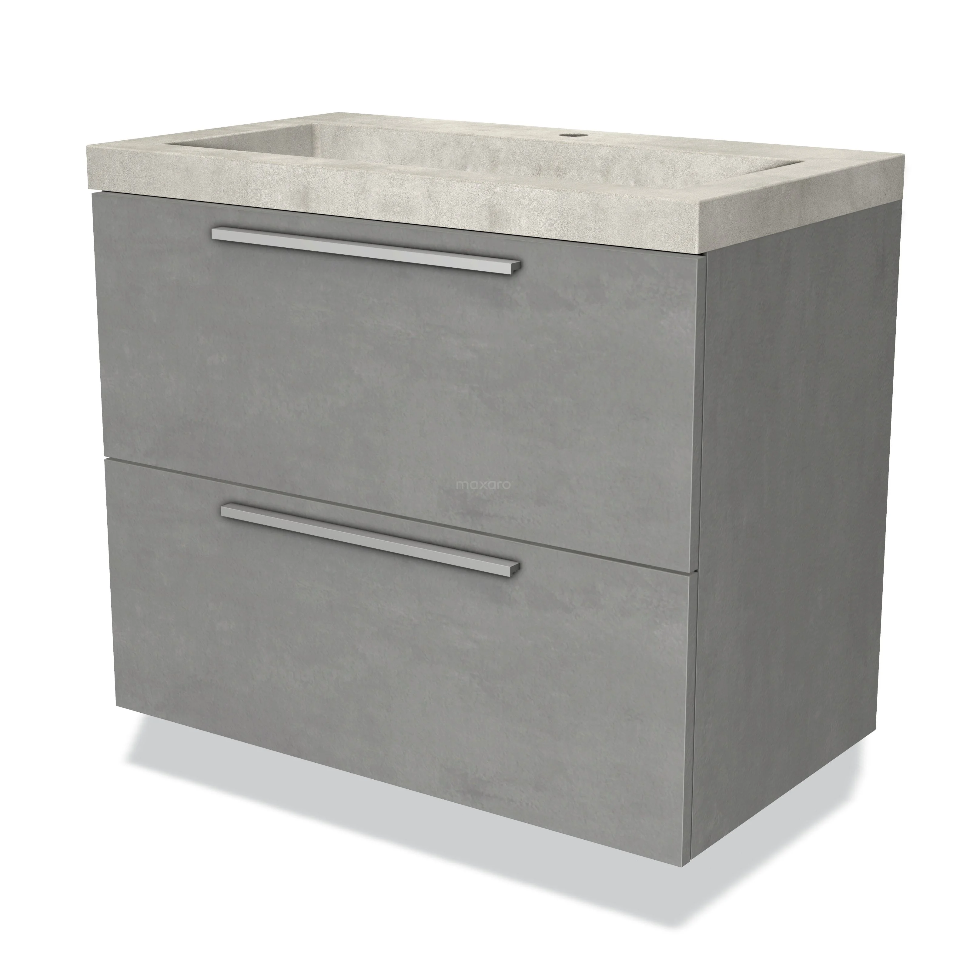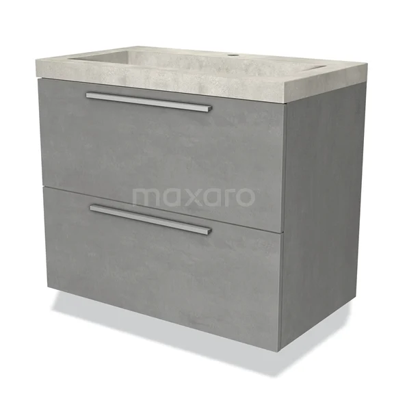 Badmöbel 80cm Modulo Hellgrauer Beton Greige 2 Schubladen Flaches Waschbecken Beton Greige