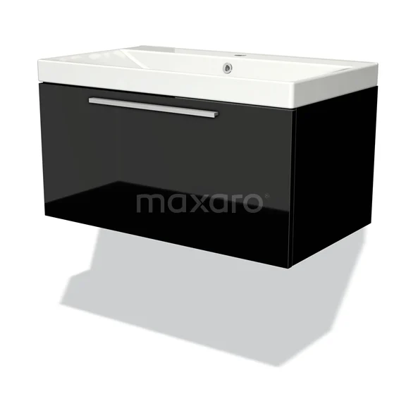 Badmöbel 80cm Modulo Hochglanz Schwarz 1 Schublade Flaches Waschbecken aus Keramik