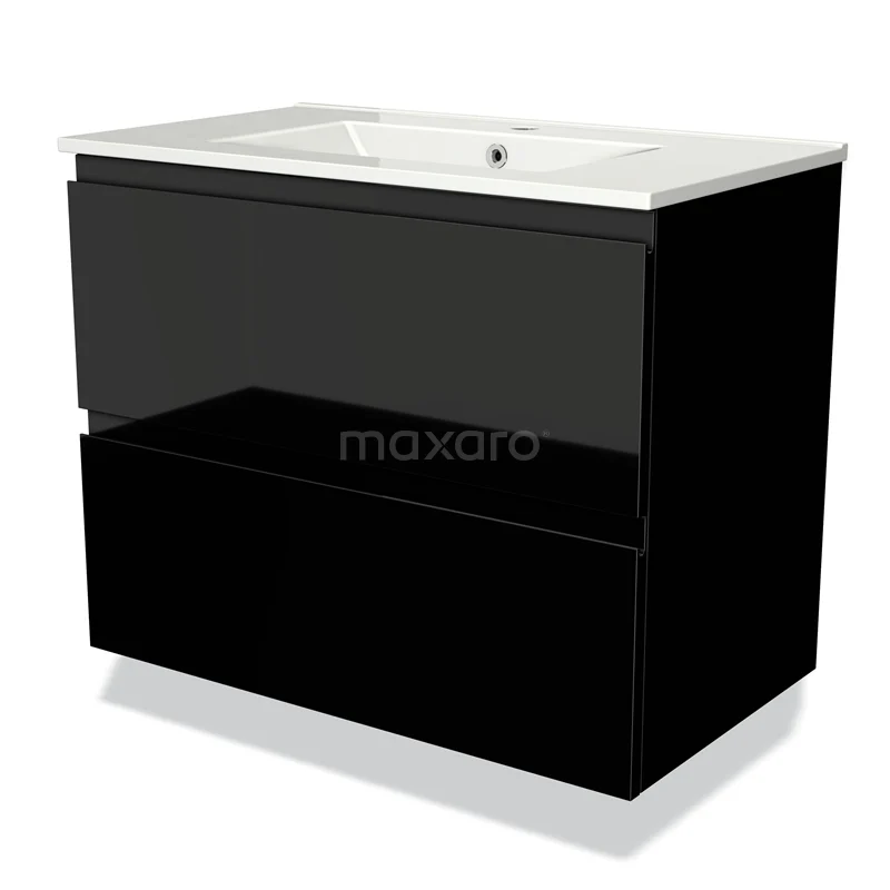 Badmöbel 80cm Modulo Hochglanz Schwarz 2 Schubladen Griffloses Waschbecken Keramik