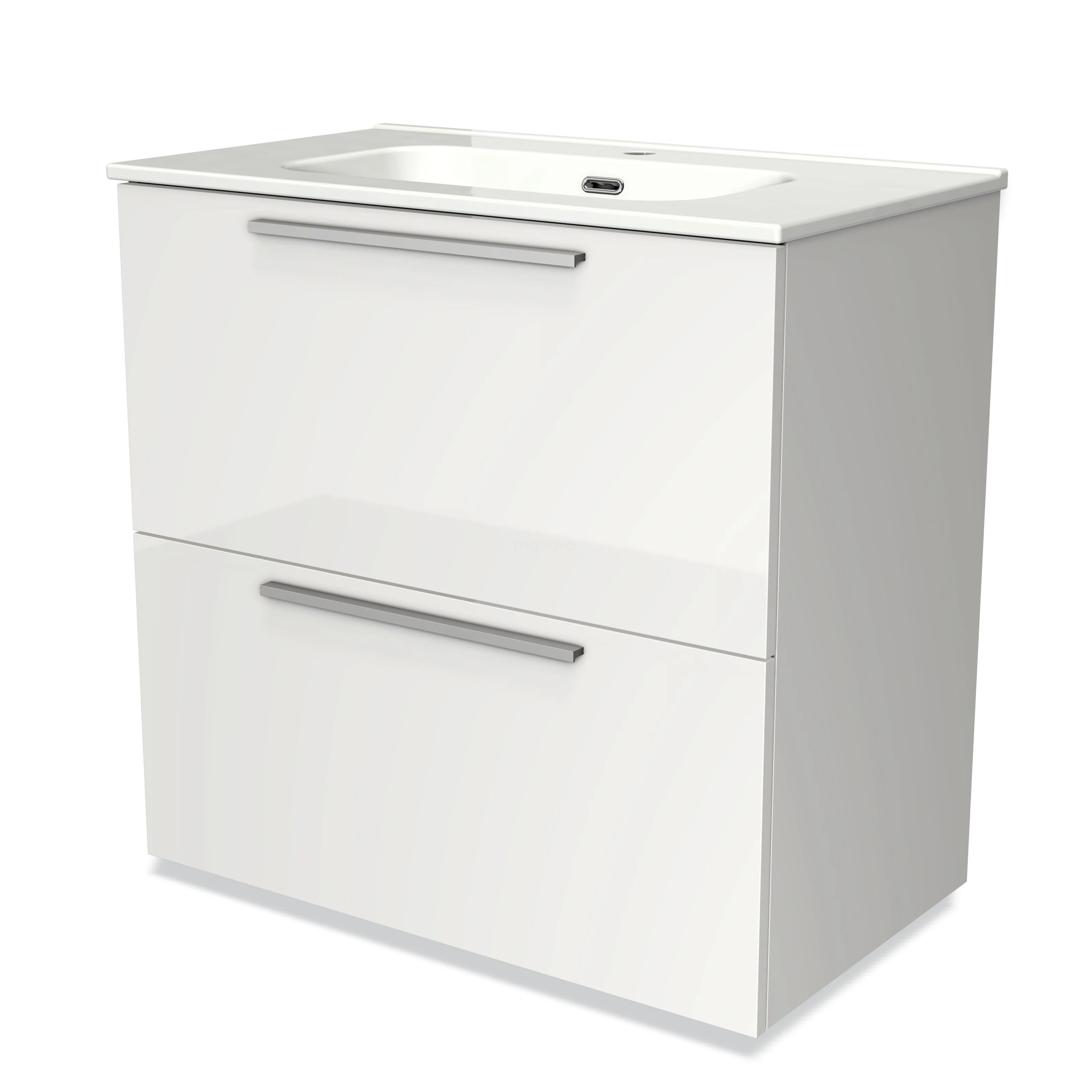 Badmöbel 80cm Modulo Hochglanz Weiß 2 hohe Schubladen Flaches Waschbecken Keramik