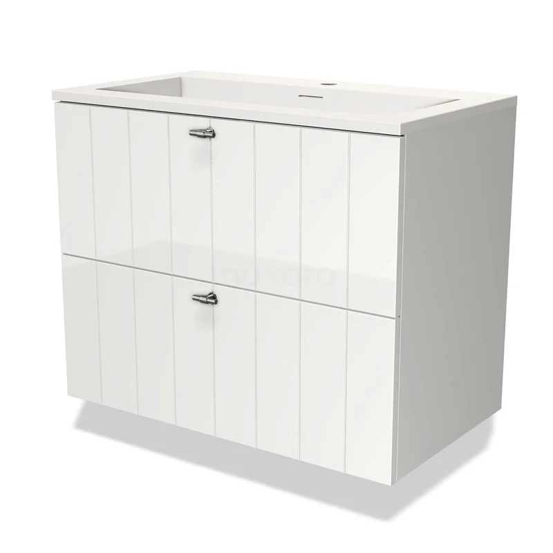 Badmöbel 80cm Modulo Hochglanz Weiß 2 Schubladen Lamellenwaschbecken Solid Surface