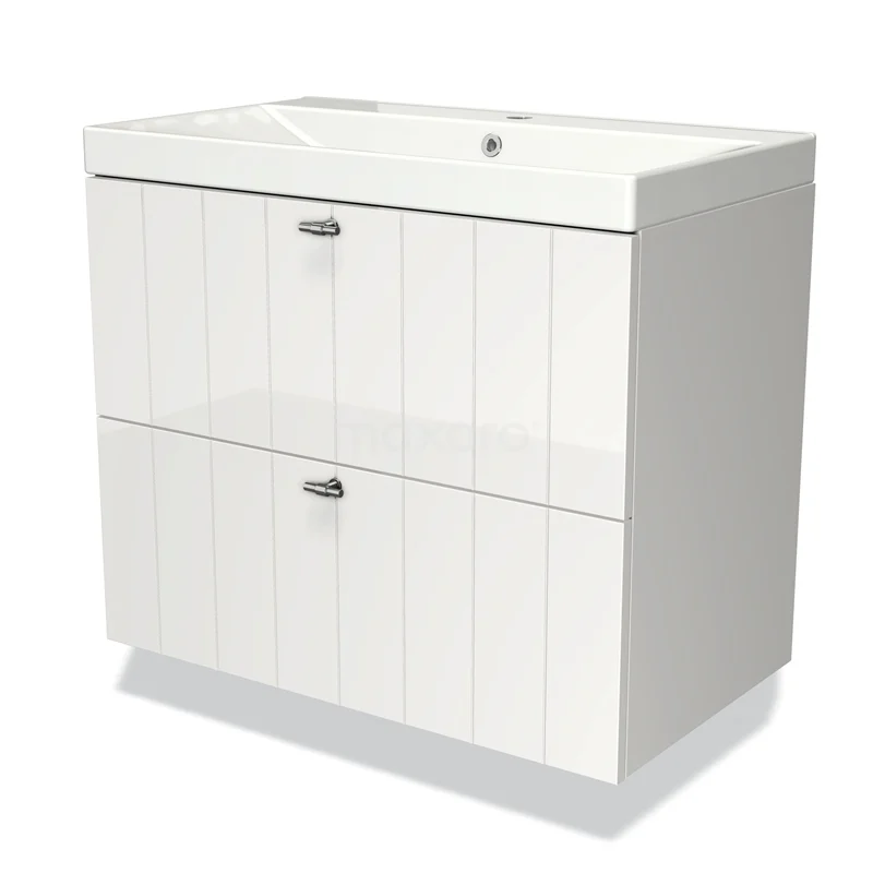 Badmöbel 80cm Modulo Hochglanz Weiß 2 Schubladen Waschbecken aus Keramik