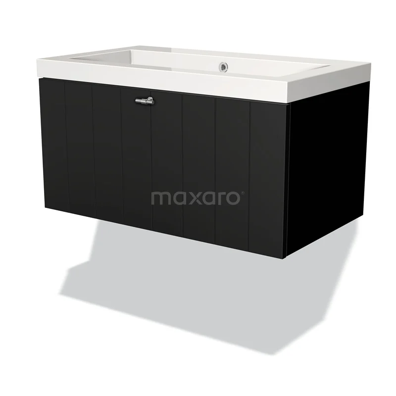 Badmöbel 80cm Modulo Matt Schwarz 1 Schubladen-Lamellen-Waschbecken Mineralguss