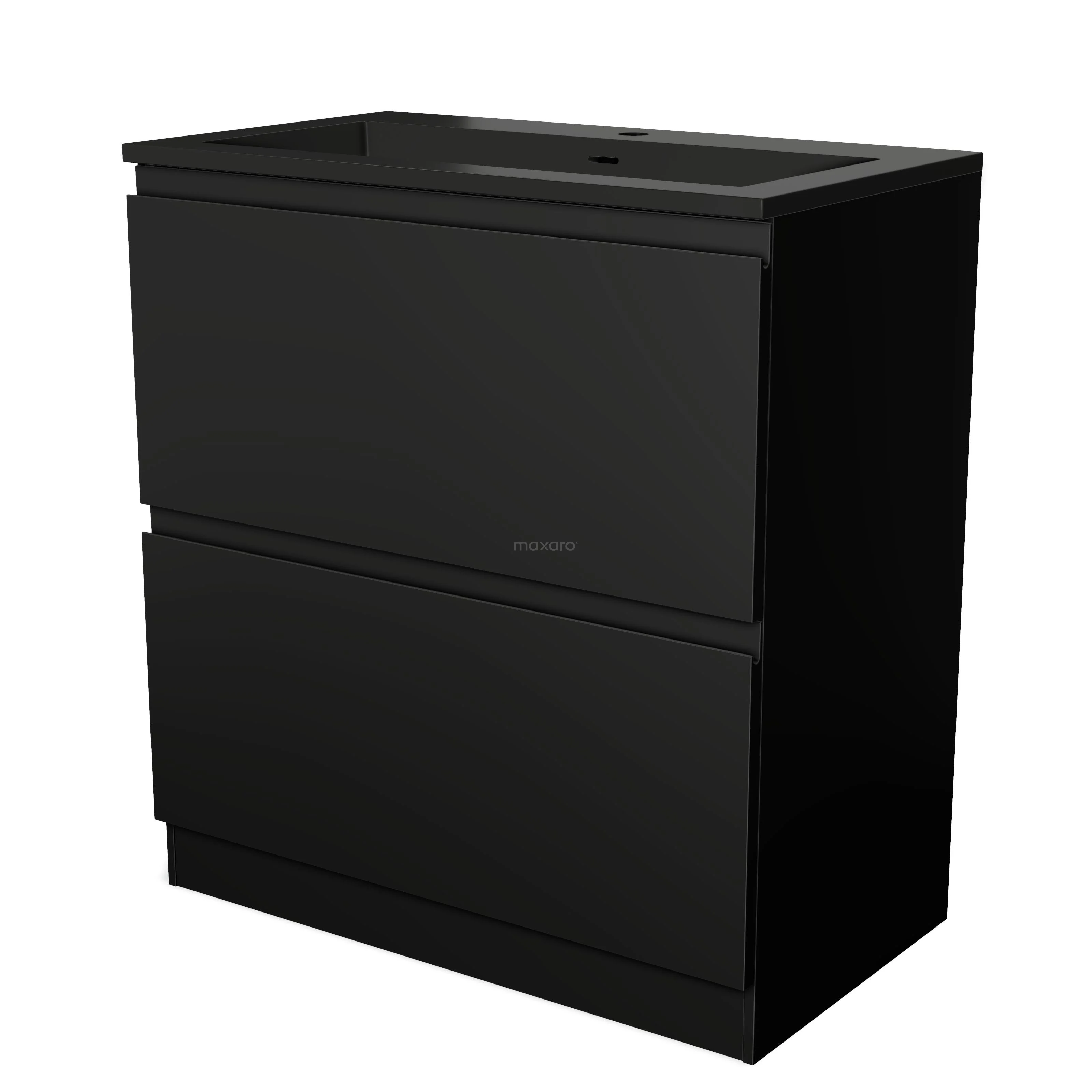 Stilvolles Design Das stilvolle Design macht diesen Badmöbel zum Blickfang in Ihrem Badezimmer. Der Unterschrank verfügt über eine grifflose Front und hat eine matte Oberfläche in Schwarz. Diese Farbe bietet eine schöne Grundlage für eine industrielle Einrichtung und ist ideal, um einen Kontrast im Raum zu schaffen. Außerdem sorgt die grifflose Front für einen eleganten Touch. nan...