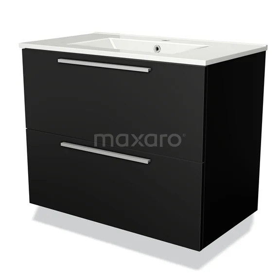 Badmöbel 80cm Modulo Matt Schwarz 2 Schubladen Flaches Waschbecken Keramik