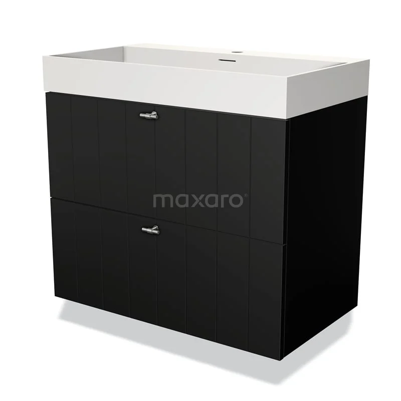 Badmöbel 80cm Modulo Matt Schwarz 2 Schubladen Lamellenwaschbecken Solid Surface