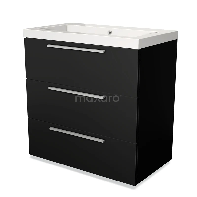 Badmöbel 80cm Modulo Matt Schwarz 3 Schubladen Flaches Waschbecken Mineralguss