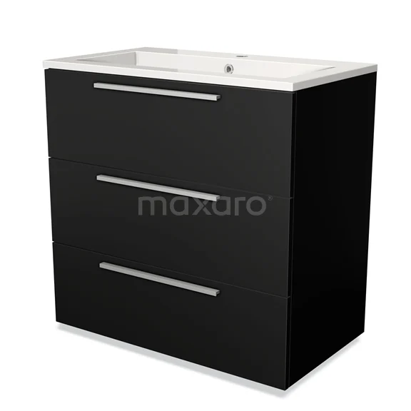 Badmöbel 80cm Modulo Matt Schwarz 3 Schubladen Flaches Waschbecken Mineralguss