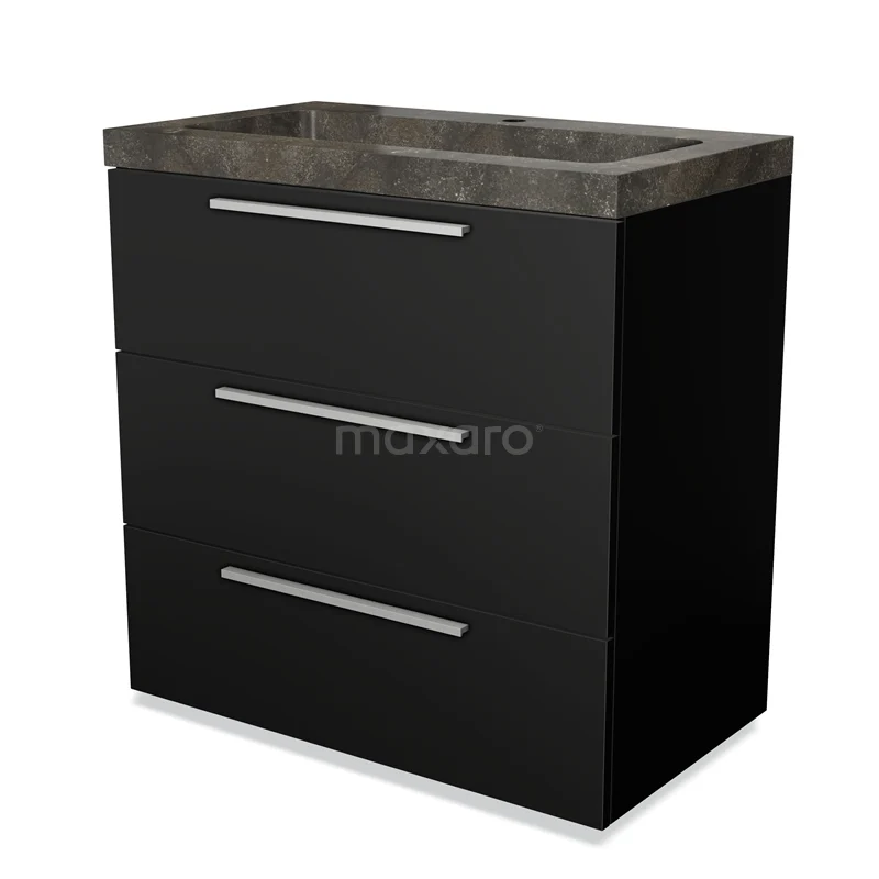 Badmöbel 80cm Modulo Matt Schwarz 3 Schubladen Flaches Waschbecken Naturstein Blau