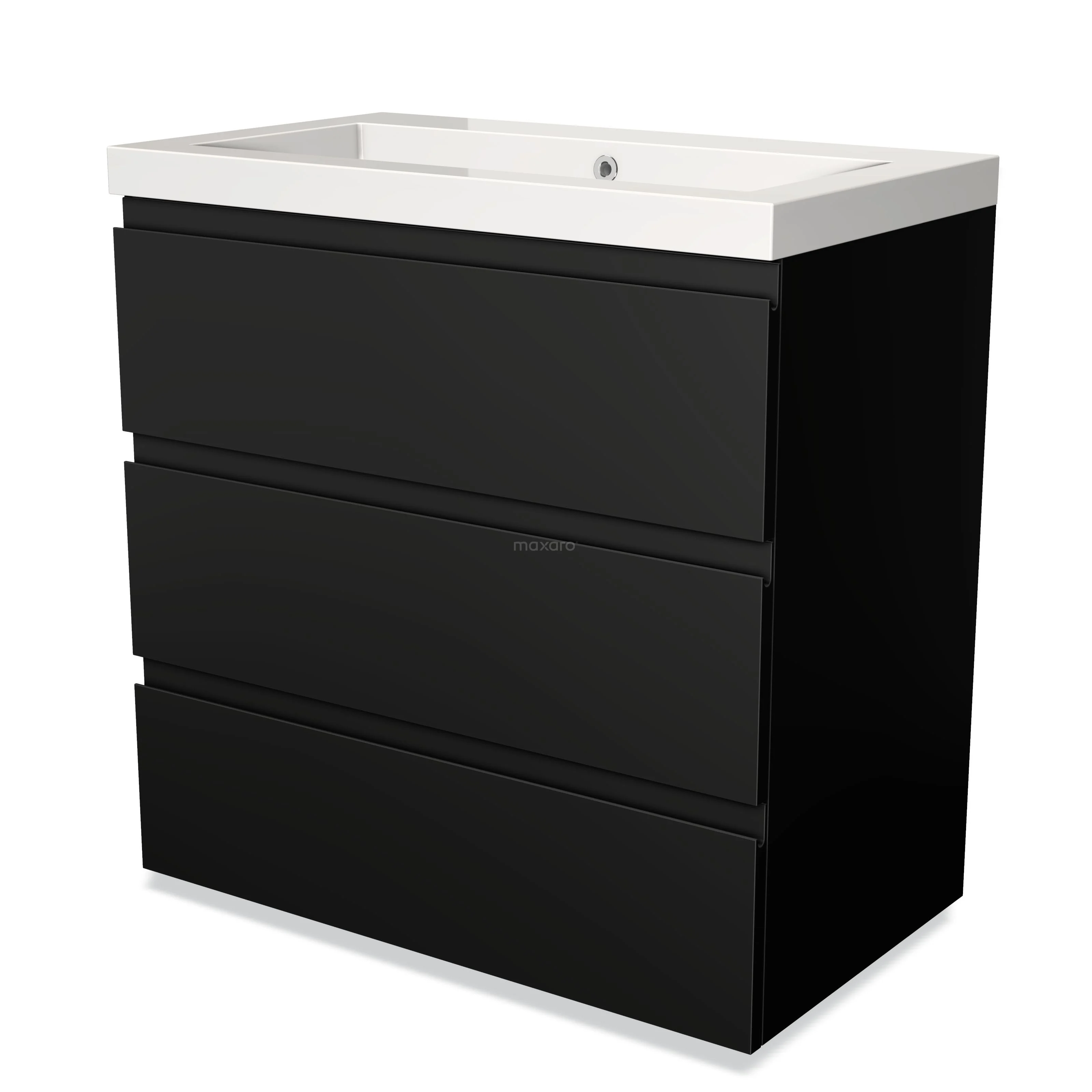 Badmöbel 80cm Modulo Matt Schwarz 3 Schubladen Griffloses Waschbecken Mineralguss