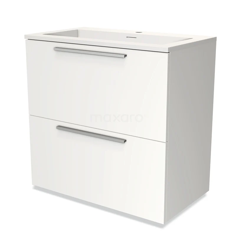 Badmöbel 80cm Modulo Matt Weiß 2 hohe Schubladen Flaches Solid Surface Waschbecken
