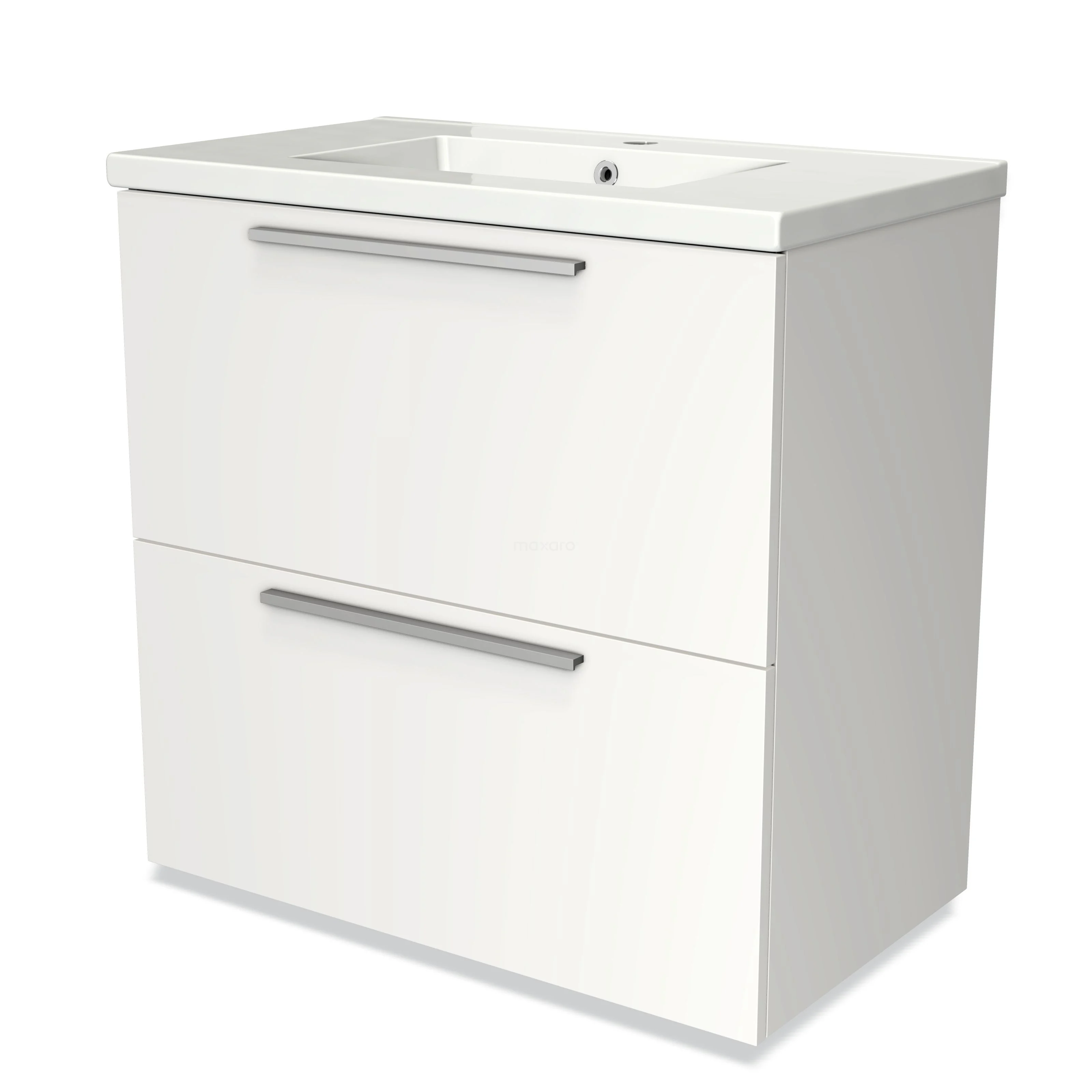 Badmöbel 80cm Modulo Matt Weiß 2 hohe Schubladen Flaches Waschbecken Keramik