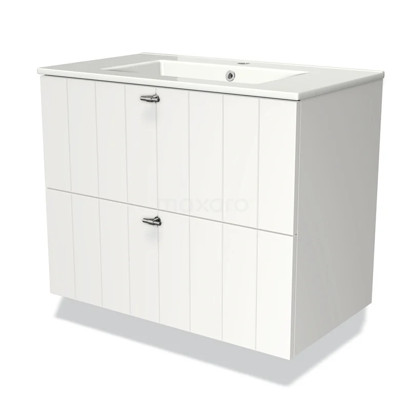 Badmöbel 80cm Modulo Matt Weiß 2 Schubladen Slat Waschbecken Keramik