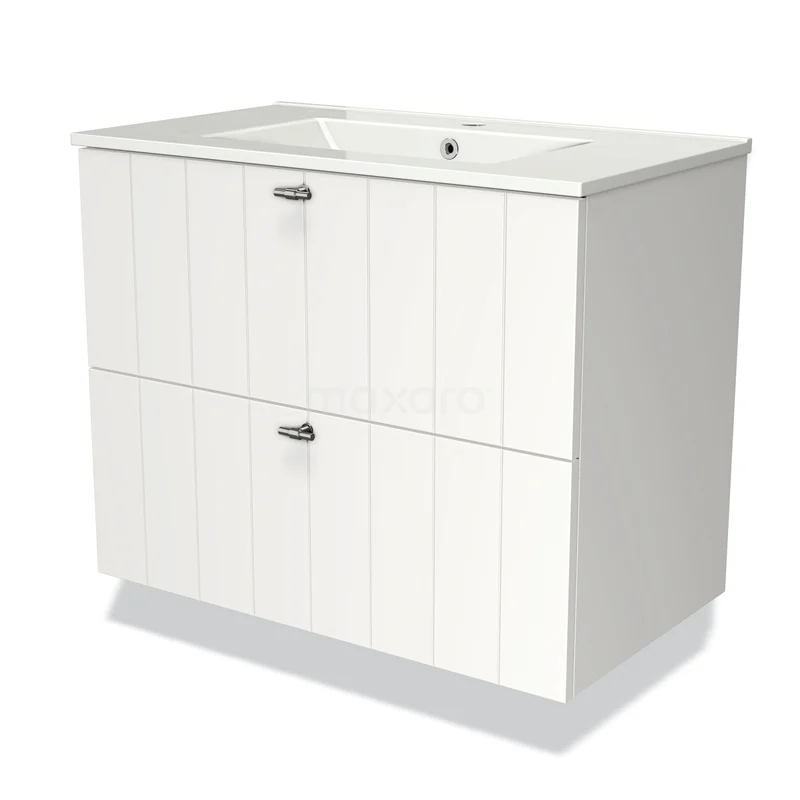 Badmöbel 80cm Modulo Matt Weiß 2 Schubladen Slat Waschbecken Keramik