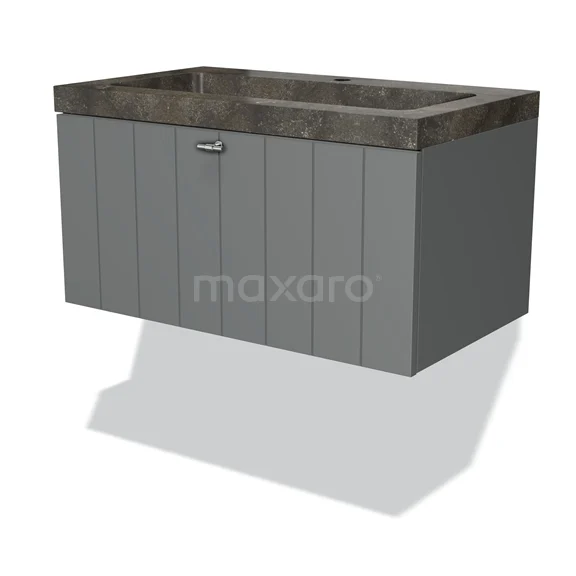Badmöbel 80cm Modulo Mittelgrau 1 Schubladen-Lamellen-Waschbecken aus Naturstein Blaustein