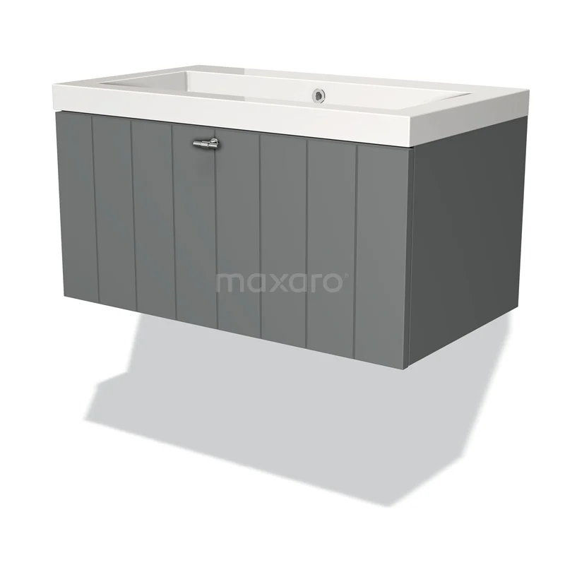 Badmöbel 80cm Modulo Mittelgrau 1 Schubladen-Lamellen-Waschbecken Mineralguss