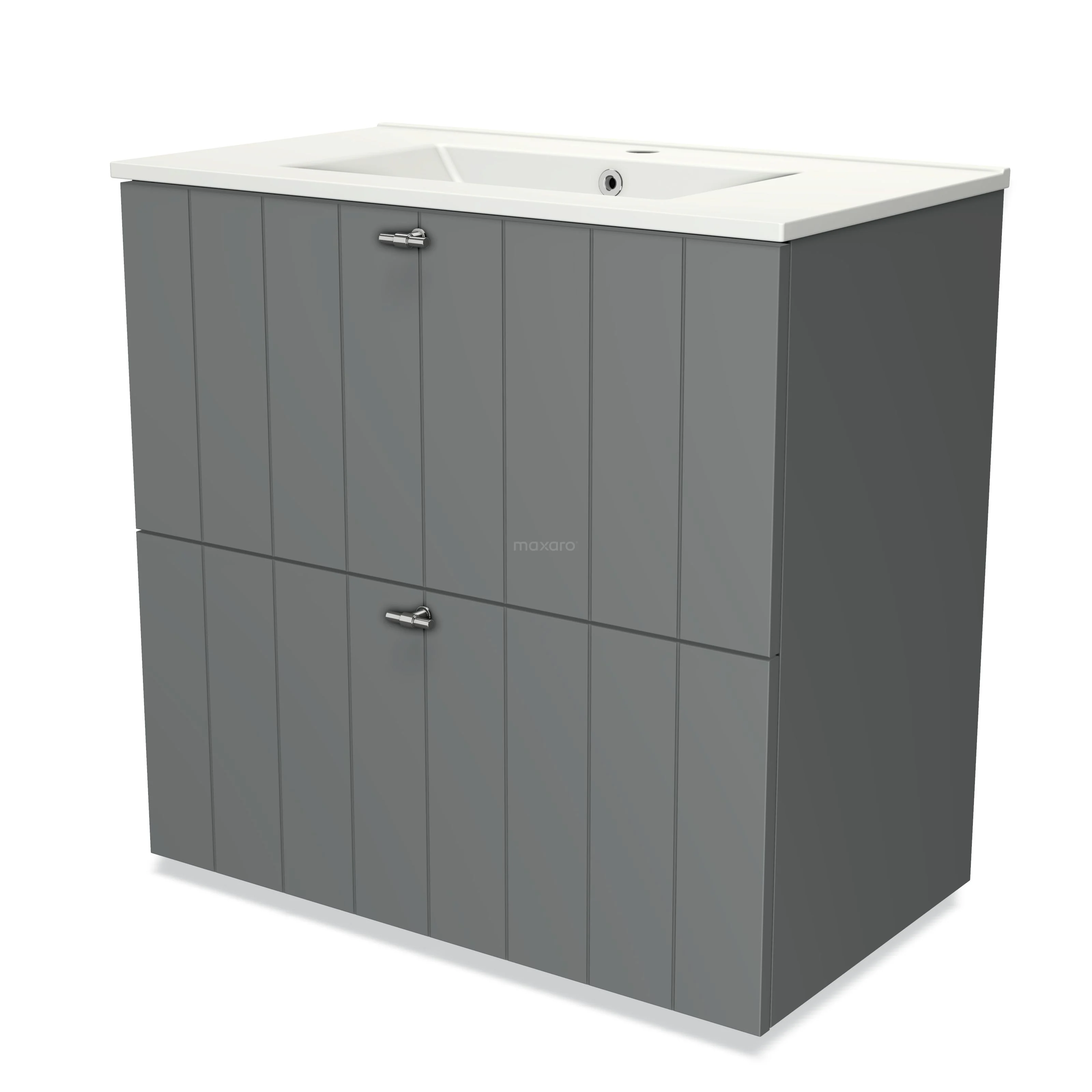 Badmöbel 80cm Modulo Mittelgrau 2 hohe Schubladen Lamel Waschbecken Keramik