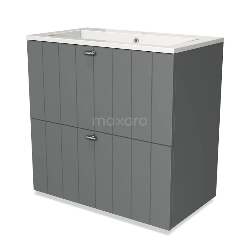 Badmöbel 80cm Modulo Mittelgrau 2 hohe Schubladen Lamellen Waschbecken Mineralguss