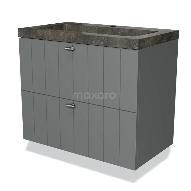 Modulo Waschtische | 80 cm Mittelgrau Lamelle front Naturstein 2 übereinanderliegende Schubladen