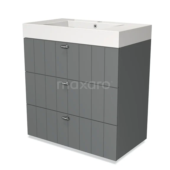 Badmöbel 80cm Modulo Mittelgrau 3 Schubladen Lamellen-Waschbecken Mineralguss