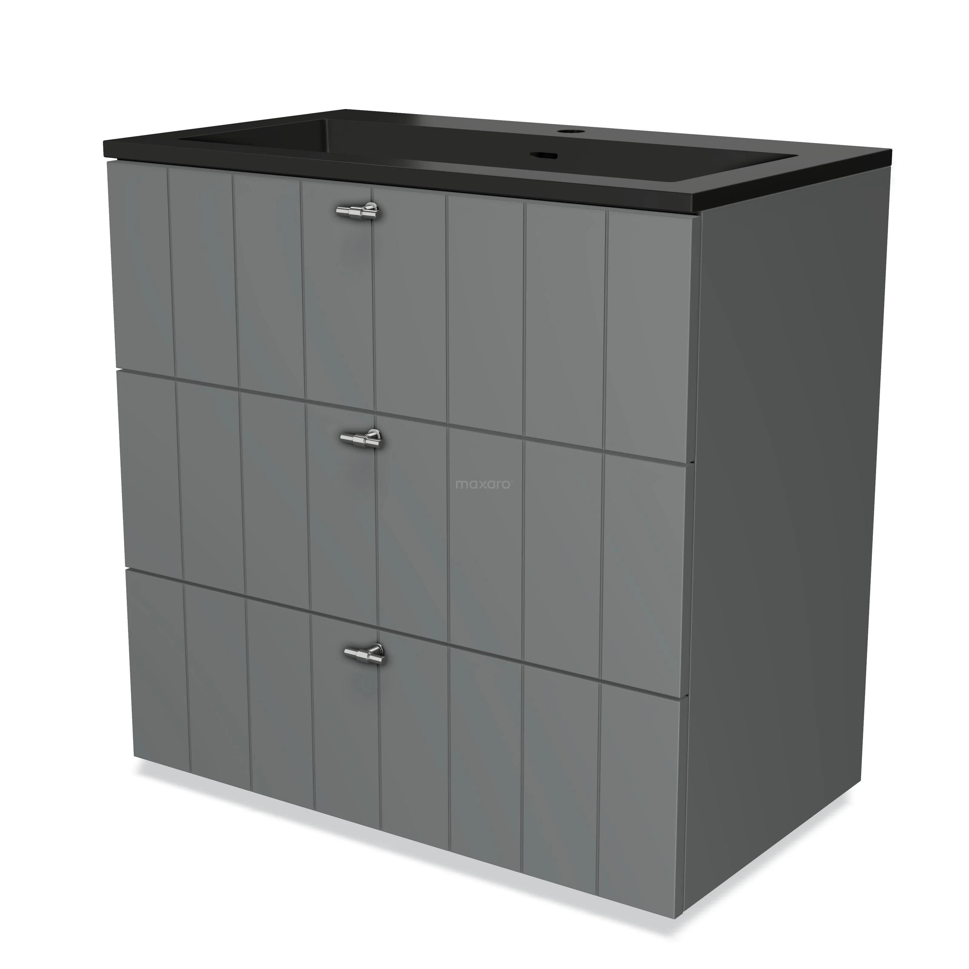 Modulo Waschtische | 80 cm Mittelgrau Lamelle front Quarz 3 Schubladen