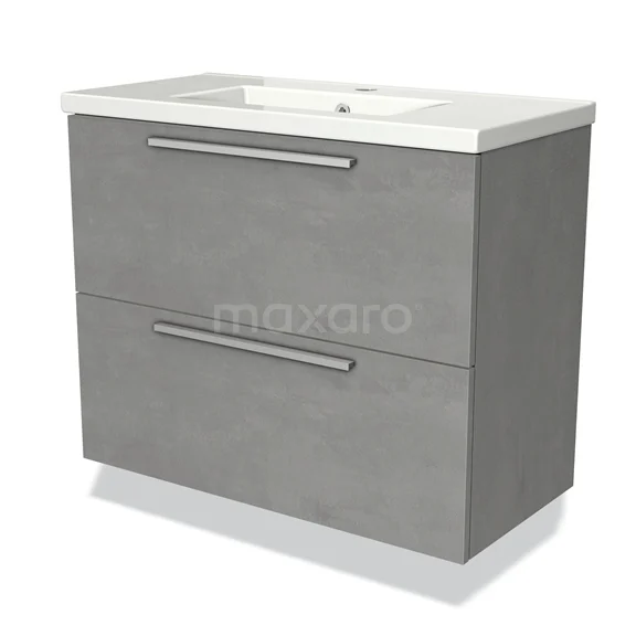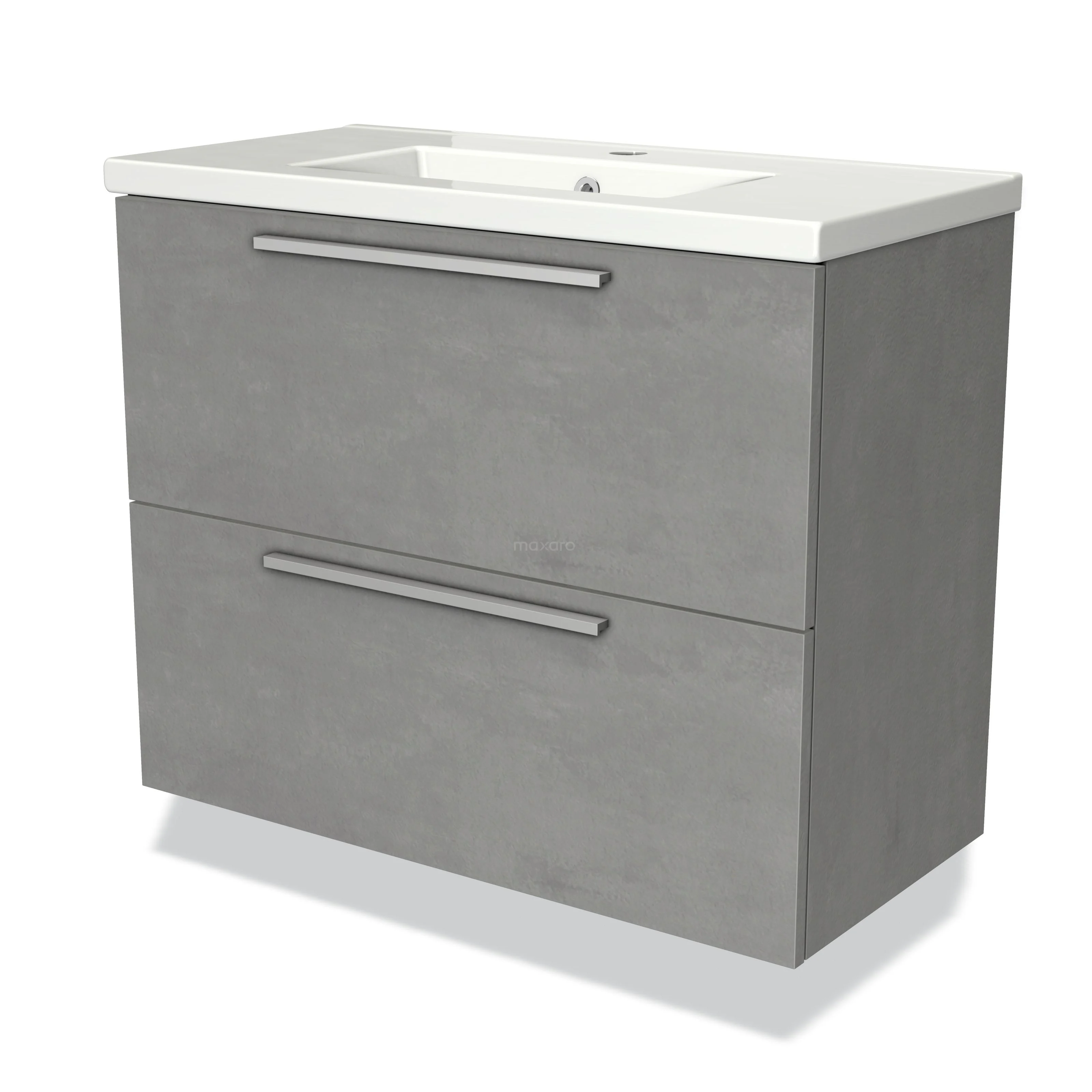 Badmöbel 80cm Modulo Slim Hellgrauer Beton 2 Schubladen Flaches Waschbecken aus Keramik