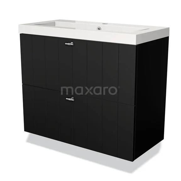 Badmöbel 80cm Modulo Slim Matt Schwarz 2 Schubladen Slat Waschbecken Mineralguss