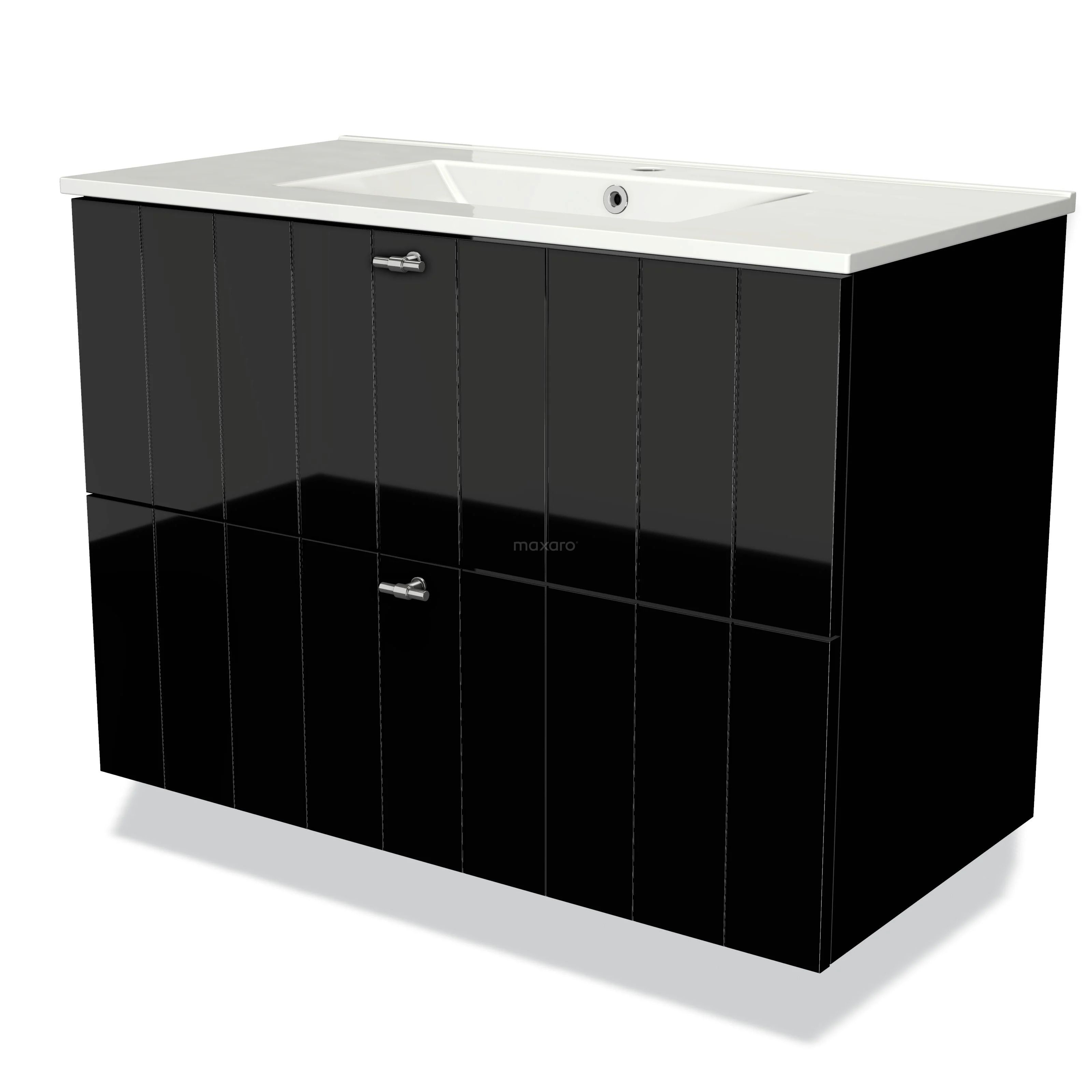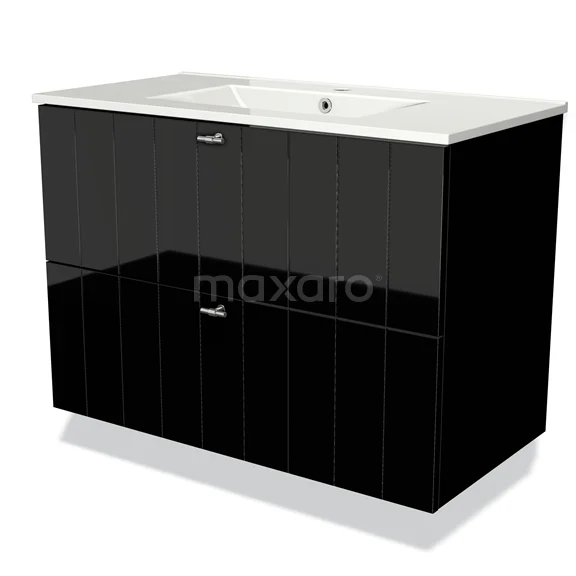Badmöbel 90cm Modulo Hochglanz Schwarz 2 Schubladen Lamellenwaschbecken Keramik
