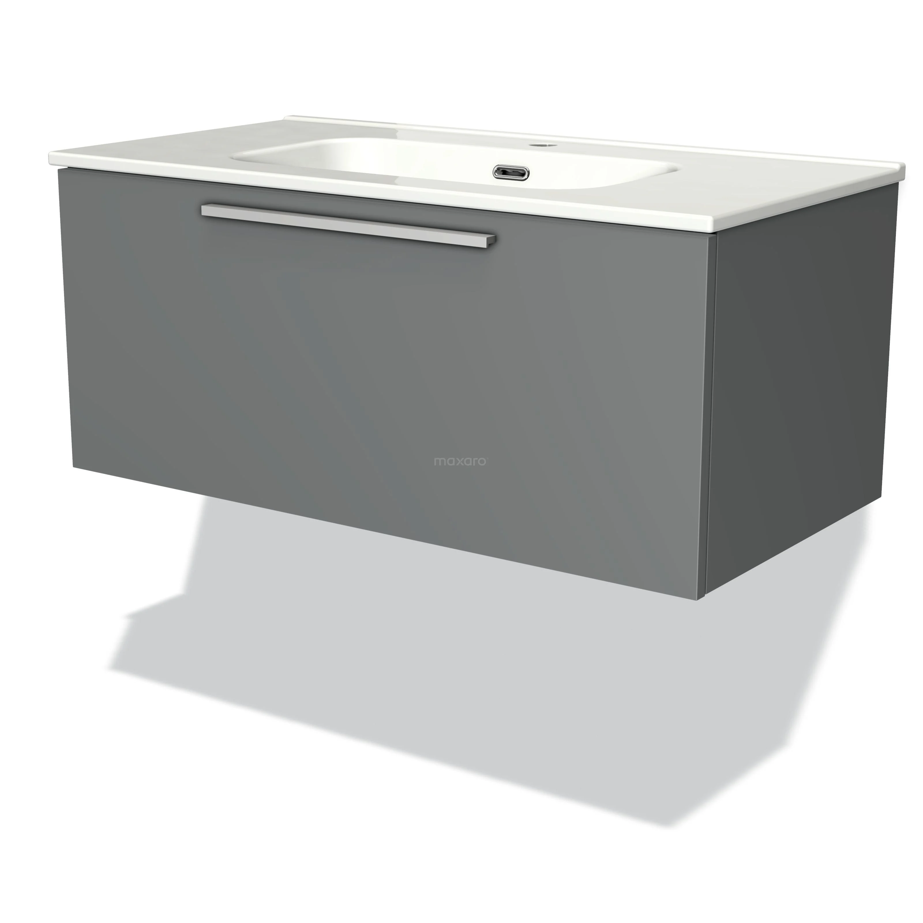 Badmöbel 90cm Modulo Mittelgrau 1 Schublade Flaches Waschbecken aus Keramik