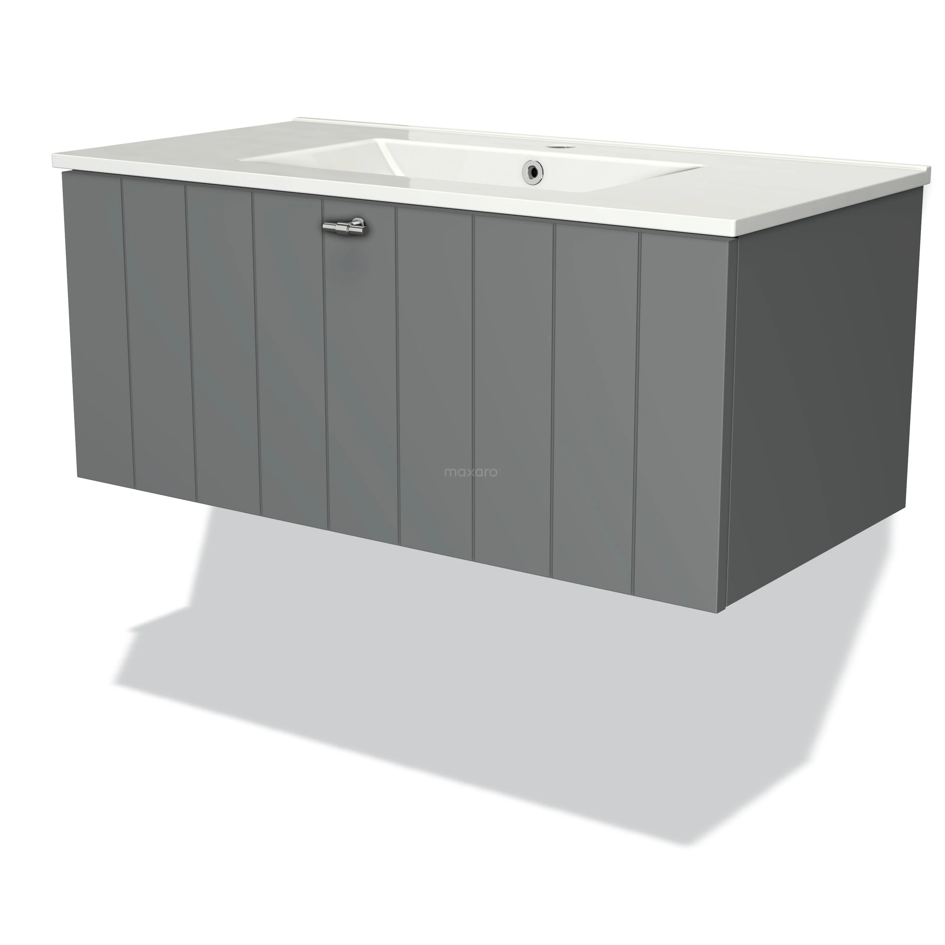 Badmöbel 90cm Modulo Mittelgrau 1 Schubladen-Lamellenwaschbecken aus Keramik
