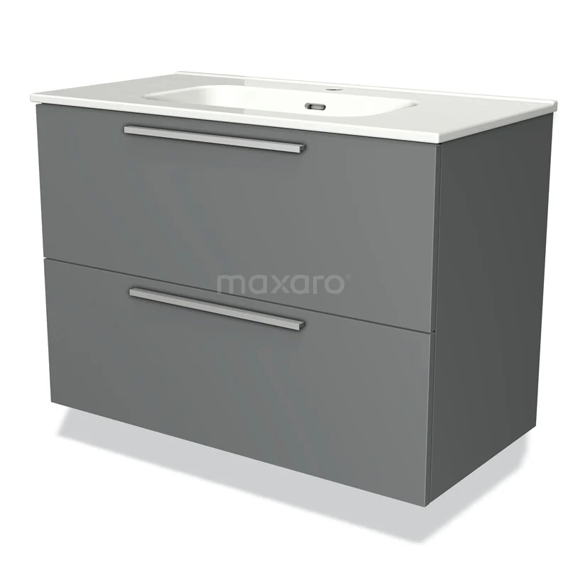 Badmöbel 90cm Modulo Mittelgrau 2 Schubladen Flaches Waschbecken aus Keramik