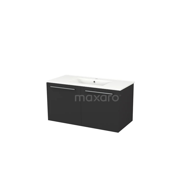 Box Waschtische | 100 cm Matt Schwarz front Keramik 2 Türen