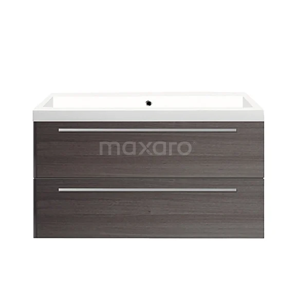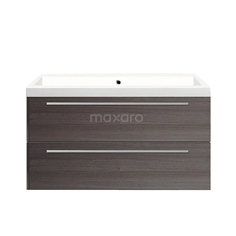 Canto Waschtische | 100 cm Dunkelbraune Esche front Mineralguss 2 übereinanderliegende Schubladen